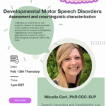 Our collaborator Dr. Carl gave a talk about Developmental Motor Speech Disorders. She provided ongoing project in her lab investigating speech intelligibility and acoustic analysis in speakers with Down Syndrome.
